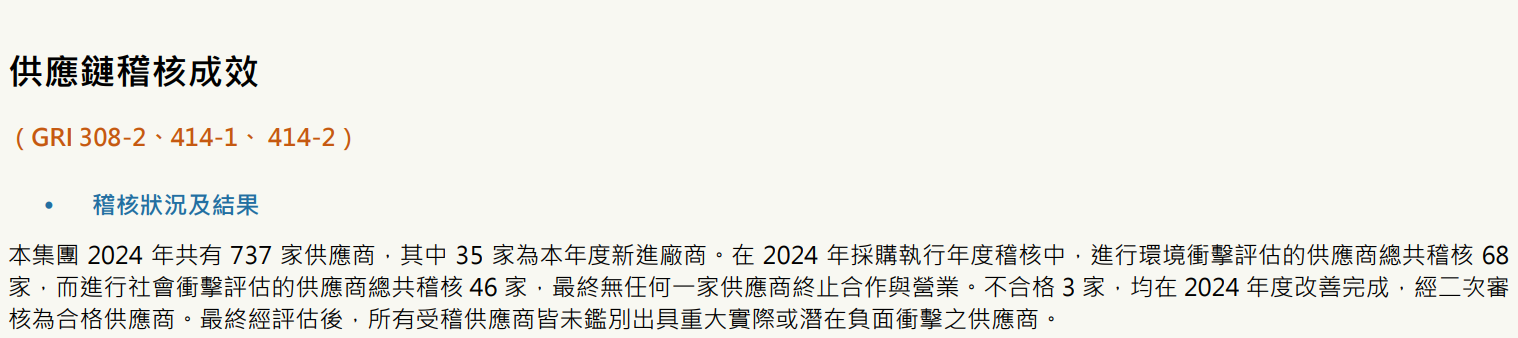 << 詳細內容請參閱:最新版 ESG永續報告書 章節:永續供應 >>