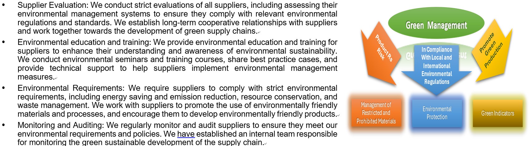 The company will never purchase and use "conflict and high-risk minerals" that mined refer to high-risk/conflict areas listed by the OECD (EX: in the Democratic Republic of the Congo and its surrounding countries and regions), and require suppliers to also comply This Statement and Governing Principles.