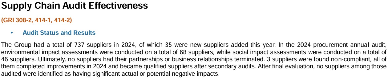 << Detailed information can be found in the latest ESG Sustainability Report, Section: Sustainable Supply Chain >>